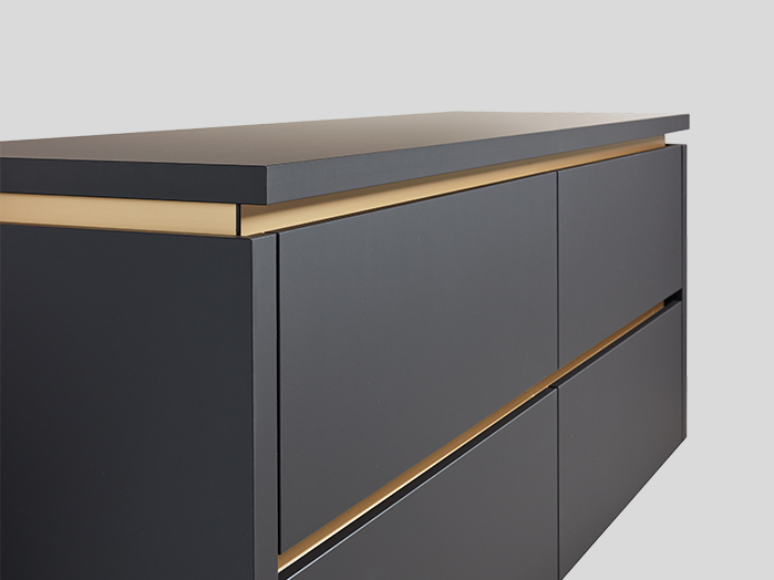 Beautiful contrasts: Combine hand basin tops with a real ceramic surface or elegant marble structure with gold or black recessed handles – discover your options from our wide range of decors.