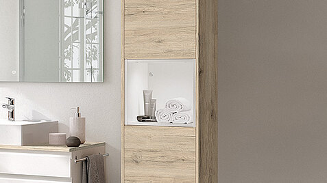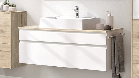 Wood looks and plain-colored fronts together always create a very unique look. The combination of our natural Montreal oak and matt white fronts, for example, creates a special lightness.
