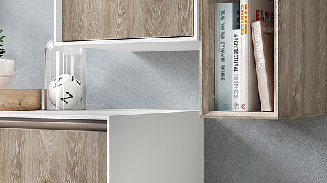 Our oak looks are authentic and expressive in combination with white or sand-colored elements. Styling tip: With flexibly placeable faceted tables, you can furnish any room – as a coffee table or a stage for individual decorative objects.