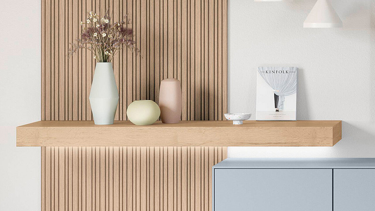 The trendy sky colour will bring a fresh breeze into your home and the light oak look will complement the natural, modern ambience. Make just the right statement with the niche in stripewood light and the practical console shelf, which can be used to showcase your favourite pieces. Especially atmospheric: smart Philips Hue linear lighting under the sideboard and lowboard for customised lighting moods. Our coffee tables also impress with their tasteful design and elegant frame.