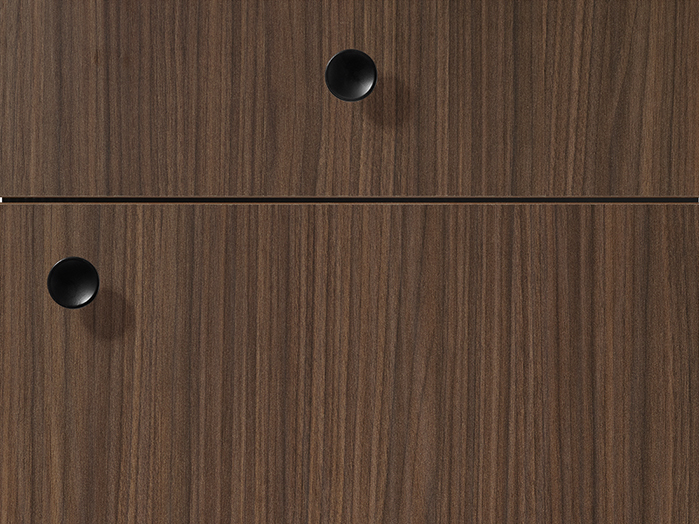 Clear forms and warm walnut tones add a modern touch of elegance to the room, whilst the accentuated lighting puts the colour depth of the wooden décor in just the right light. A contrasting effect that creates a relaxed atmosphere.Our Midi unit ensures that care products and bathroom accessories are always within easy reach – a practical bathroom furniture solution that combines convenience and organisation.