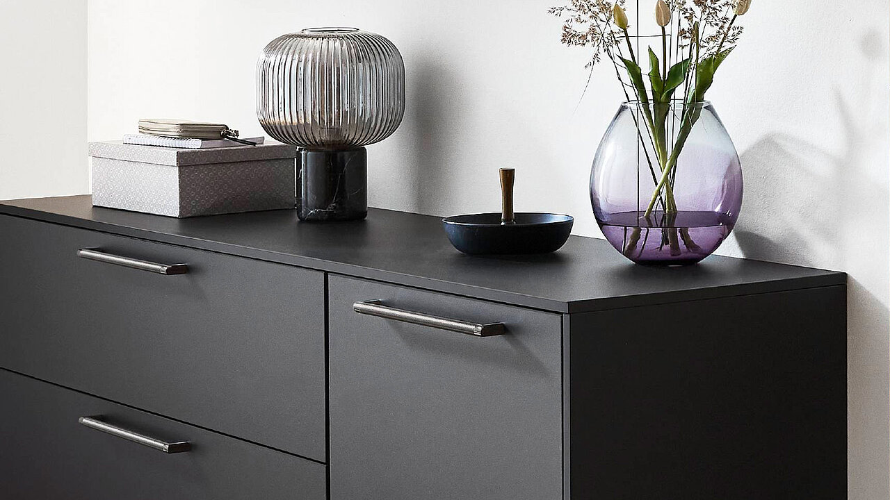 Not only functional, but also a real statement for your four walls! The sideboard in black super matt stands out perfectly, especially in light-colored room designs, and also offers sufficient storage space for all important everyday items. Practical and stylish at the same time.