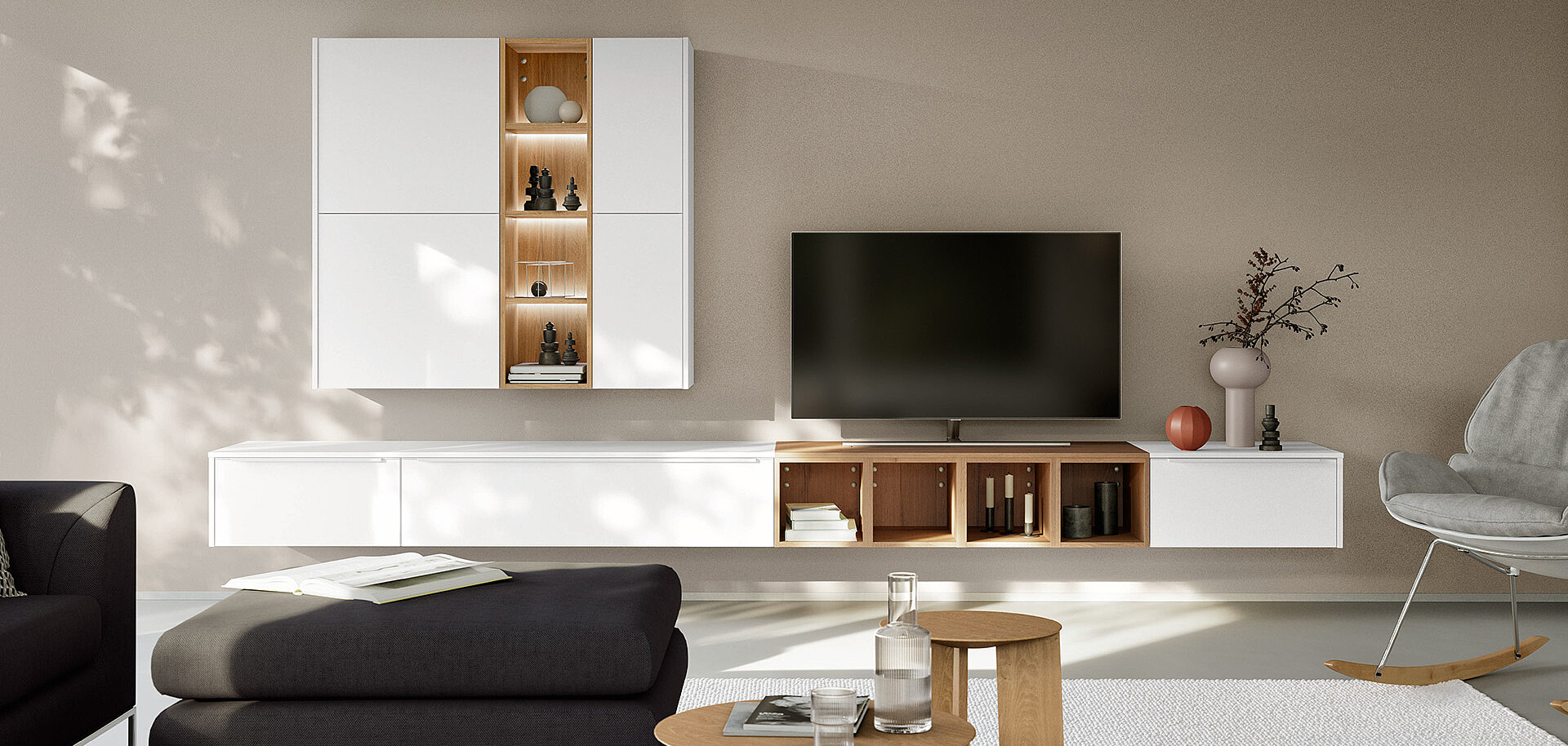 Discover our modern furniture for your living room, including comfortable media furniture and versatile coffee tables that optimise your space. Fall in love with cosy details and create a home that perfectly suits your lifestyle.