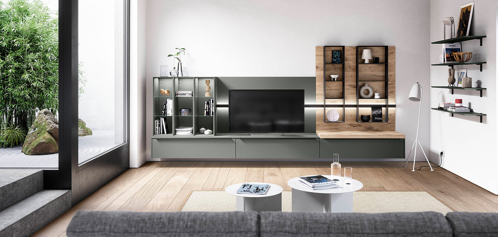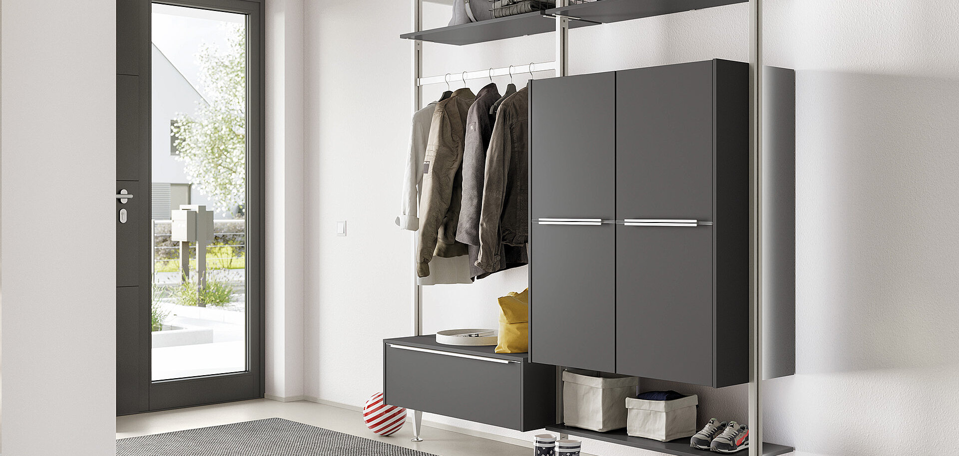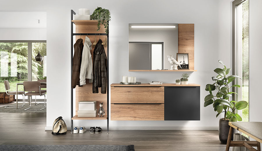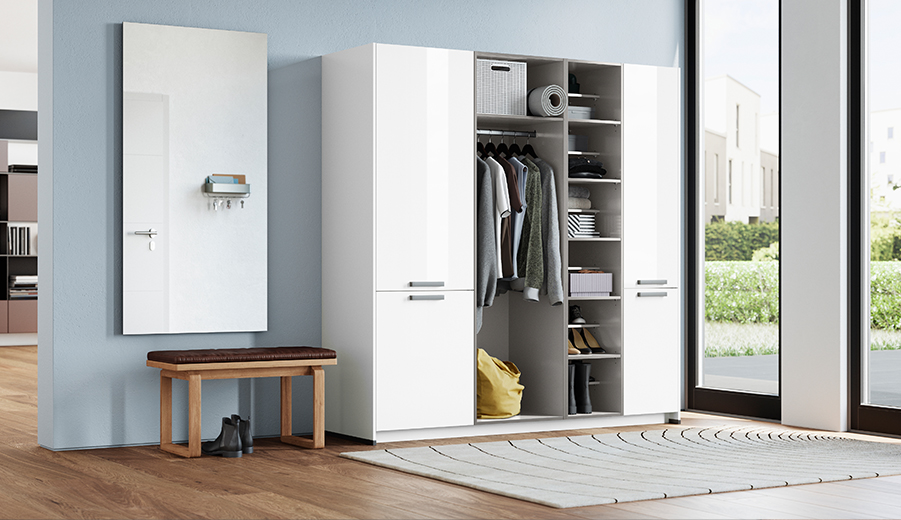 Whether it is used as an herb garden in the kitchen or as a wardrobe, for storage in the living room or bathroom or even as a walk-in wardrobe—our shelving system is a striking conversation piece in every room. The shelving system offers you multifaceted and flexible planning options. With innovative ideas, elegant design and countless practical details for integrated contemporary home interiors.