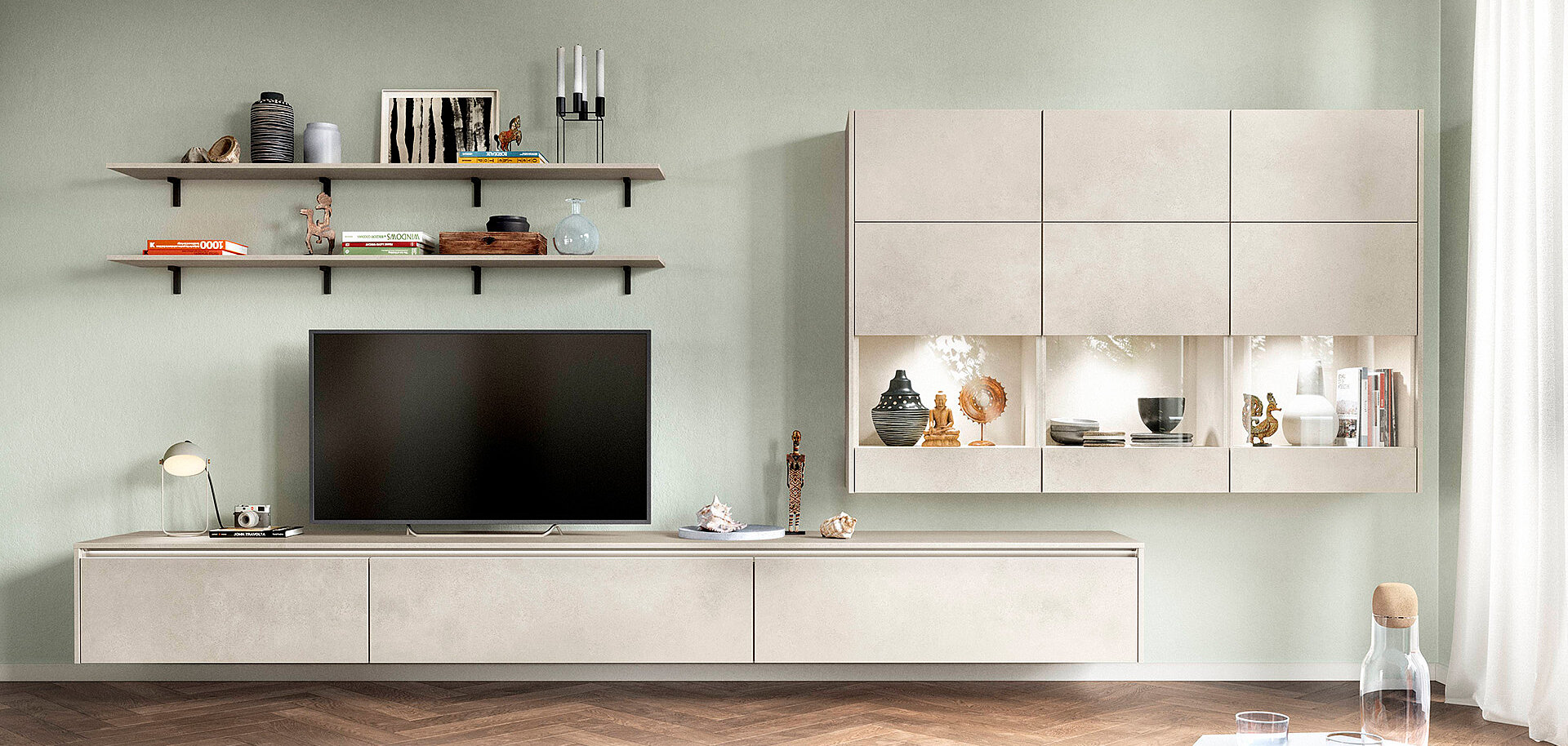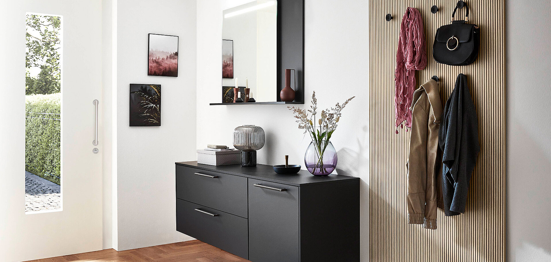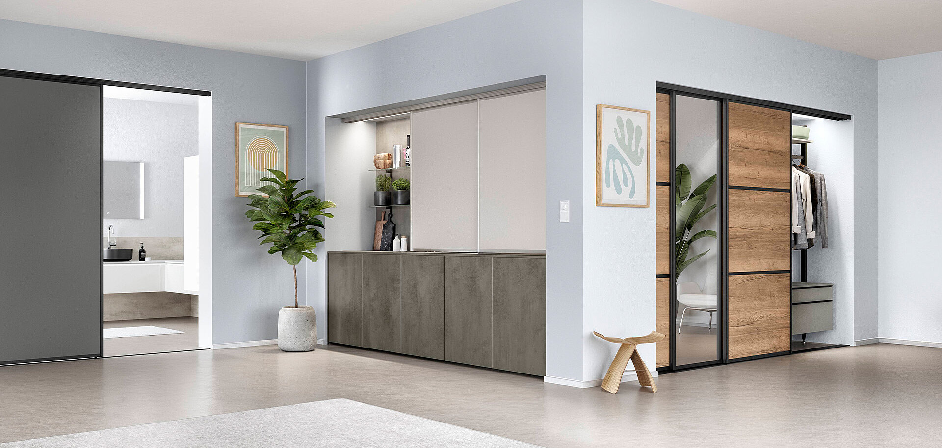 Whether it is used as an herb garden in the kitchen or as a wardrobe, for storage in the living room or bathroom or even as a walk-in wardrobe—our shelving system is a striking conversation piece in every room. The shelving system offers you multifaceted and flexible planning options. With innovative ideas, elegant design and countless practical details for integrated contemporary home interiors.