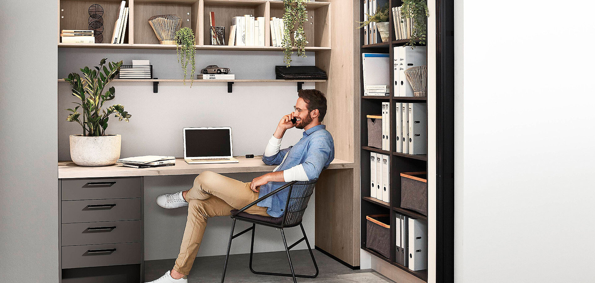 For a home office with attractive furnishings – nobilia has what you need! Our modular furniture concepts enable you to link your working and living spaces in style. We turn your workspace at home into a feel-good office and modern working area with functional storage options. So you can work more beautifully!